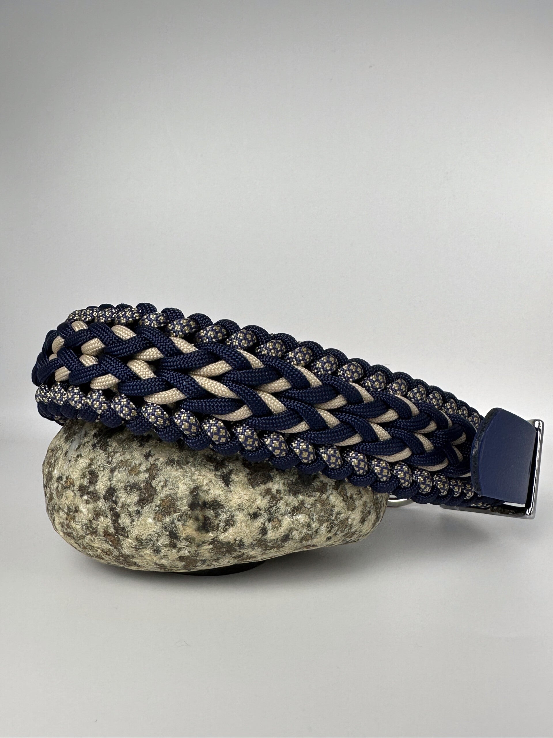 Voor deze halsband is er gebruik gemaakt van donker blauw biothane.
