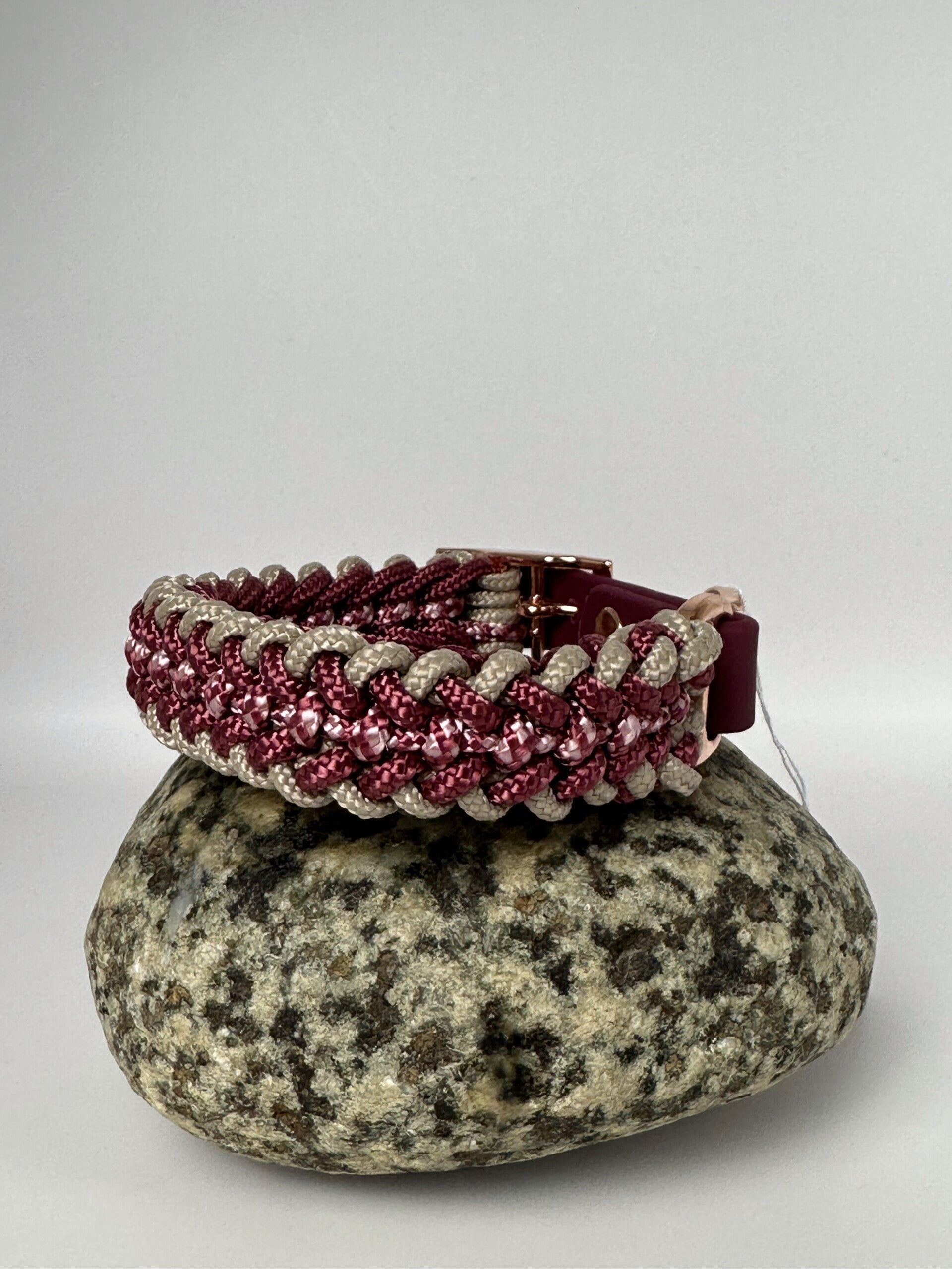 Voor deze halsband is er gebruik gemaakt van bordeaux biothane.