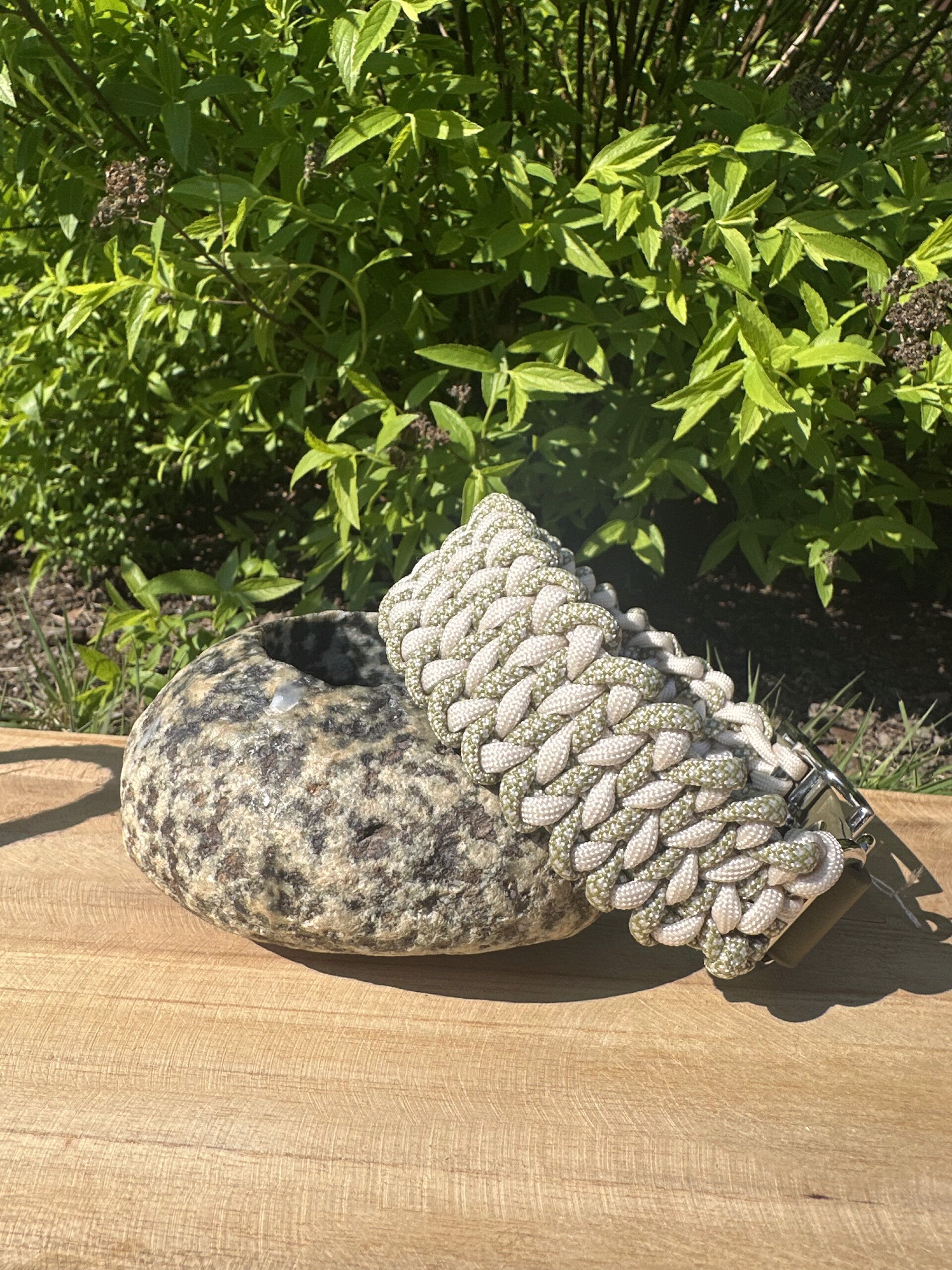Voor deze halsband is er gebruik gemaakt van beige biothane.